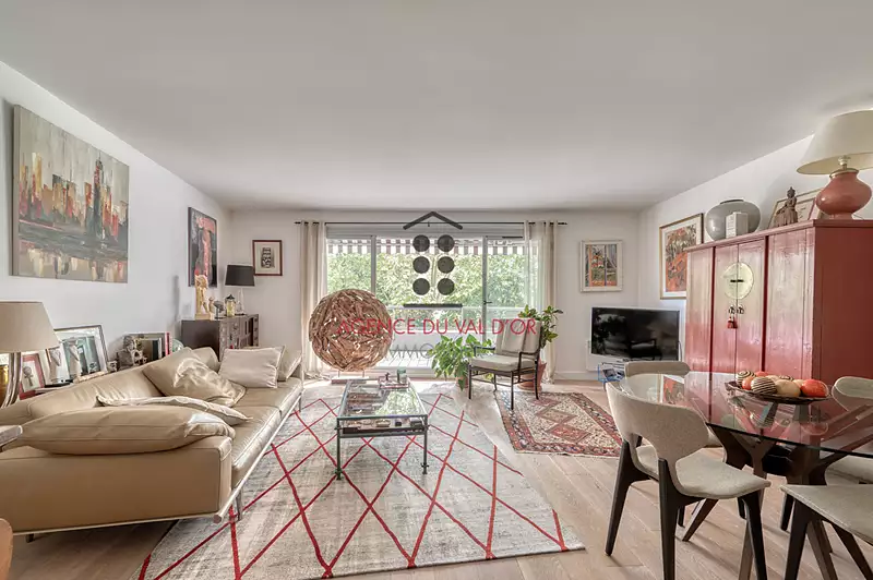 SAINT-CLOUD / HIPPODROME Dans un quartier recherché des hauts de Saint-Cloud, proche de l'Hippodrome et des commerces (Edouard Vaillant) Au 3ème étage, avec ascenseur, d'une résidence (1982) de standing et calme, près de la gare du Val d'Or et du Tram (SNCF Ligne L et Tram T2). Magnifique appartement de 4 pièces de 97,69 m2 en parfait état et agencé avec goût, offrant une belle entrée avec placards (7,04 m2), un grand séjour (30,33 m2) ouvrant sur un vaste balcon d'environ 17 m2 agréable et bien exposé donnant sur l'Hippodrome de Saint Cloud, une cuisine indépendante récente et équipée (8,60 m2). Ce bien propose également un dégagement, 3 chambres spacieuses de 12,05 m2 et 11,87 m2 et 10,10 m2 (dont 2 chambres ouvertes sur un 2ème balcon de près d'environ 10 m2) , un dressing, une salle de bains, une salle d'eau avec wc et un 2ème wc indépendant. Cet appartement bénéfice de très belles prestations et n'attend plus que vous. Une cave et 1 parking en sous-sol complètent ce bien rare sur le marché. Agence du Val d'Or / PP / 01.45.06.60.13 Les informations sur les risques auxquels ce bien est exposé sont disponibles sur le site Géorisques : www.georisques.gouv.fr (4.17 % honoraires TTC à la charge de l'acquéreur.) Copropriété de 447 lots - dont 101 lots habitation. (Pas de procédure en cours). Charges annuelles : 6000 euros.