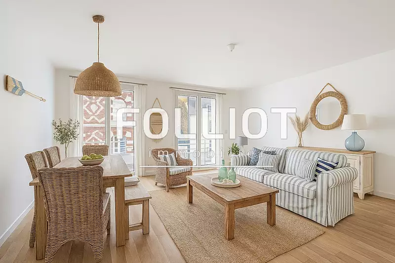 Le Cabinet Folliot Barneville-Carteret vous propose en plein coeur du village recherché de Carteret un appartement entièrement rénové situé au deuxième et dernier étage d'une petite résidence composée de trois lots seulement offrant calme et intimité tout en étant à proximité immédiate de toutes les commodités à pied commerces restaurants port marché et la très belle plage de la POTINIERE. Dès l'entrée vous serez séduit par la luminosité de ce bien qui bénéficie d'une entrée distribuant l'ensemble des pièces de façon fonctionnelle. Le séjour baigné de lumière offre un espace convivial et chaleureux ouvrant sur une terrasse privative avec une belle vue dégagée et un ensoleillement idéal pour vos petits-déjeuners ou instants de détente. La cuisine aménagée et équipée avec soin est indépendante et peut accueillir un espace buanderie. Deux chambres confortables et lumineuses permettent d'accueillir famille ou amis dans un cadre reposant et bien agencé. La salle de douche moderne est équipée d'aménagements actuels de qualité et les WC sont séparés pour plus de confort au quotidien. L'atout supplémentaire de ce bien réside dans ses combles aménageables directement accessibles depuis l'appartement offrant un potentiel d'agrandissement ou de création d'un espace supplémentaire selon vos besoins que ce soit une suite parentale un bureau un espace détente ou une chambre d'amis Ce bien rare combine charme rénovation soignée et beaux volumes tout en profitant d'un emplacement de choix au coeur de Carteret. Idéal en résidence principale pour une vie paisible tout à pied ou en résidence secondaire pour profiter pleinement de la mer du port et de l'ambiance animée de la station balnéaire ! Cet appartement a une classe énergétique C(162 kWh/m²/an). Quant à la classe climatique, cette dernière est notée A( 5KG CO2/m²), impliquant un taux d'émissions de gaz à effet . Le montant des dépenses annuelles d'énergie pour un usage standard est estimé entre 1010 euros et 1410 euros en 2023. Les informations sur les risques auxquels ce bien est exposé sont disponibles sur le site Géorisques : www.georisques.gouv.fr. Pour plus d'informations ou pour organiser une visite, n'hésitez pas à contacter Anissa ARNONE RSAC 941 571 515 au 06 98 85 06 48 ou par mail à Copropriété de 3 lots - dont 2 lots habitation. (Pas de procédure en cours). Charges annuelles : 100 euros. Anissa ARNONE (EI) Agent Commercial - Numéro RSAC : 941.571.515 - CHERBOURG EN COTENTIN.