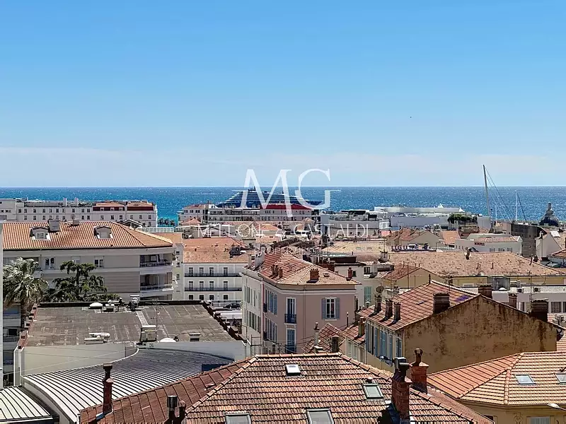 Beau 4 pièces de 98,27 m2 au dernier étage avec vue mer, dans immeuble de type Haussmannien dans une impasse à quelques pas de l'hyper centre et du Palais des Festivals.
