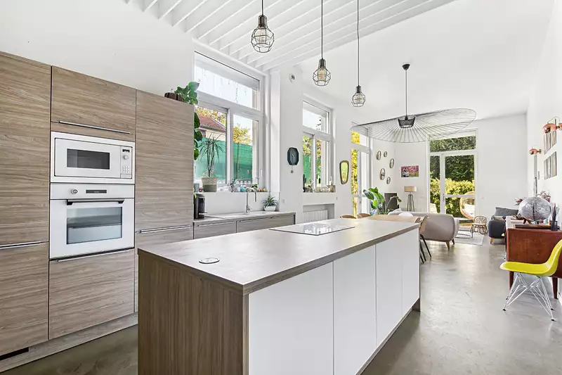 CHATOU BAS à seulement 10 mn à pied de la gare du RER, du centre-ville et à quelques minutes des écoles, venez découvrir cet appartement de 98 m² loi Carrez et 100 m² au sol, rénové avec soin en 2014. Ce bien offre de belles prestations et une décoration contemporaine raffinée dans un cadre de vie calme. Dès l'entrée vous serez séduit par son vaste espace de vie de 40 m² baigné de lumière et sublimé par une hauteur sous plafond de 3,60 mètres. La pièce principale, avec sa cuisine moderne équipée et son îlot central, s'ouvre sur un salon lumineux grâce à ses grandes ouvertures. Celles-ci donnent directement accès de plain-pied sur une terrasse et un jardin privatif de 80 m², exposé plein ouest, idéal pour profiter du soleil en toute quiétude. On trouve ensuite une suite parentale de 15 m² qui comprend un dressing et une salle d'eau et un WC séparé. En descendant à l'étage inférieur, le dégagement avec de nombreux placards distribue deux chambres, une salle de bains avec un WC et espace buanderie. En complément, l'appartement dispose d'une place de stationnement extérieur et d'une cave. L'appartement a fait l'objet d'une rénovation complète en 2014 par un architecte avec des matériaux de qualité, incluant l'isolation des murs et du plafond. C'est un véritable coup de coeur. N'hésitez pas à nous contacter pour plus d'informations ou pour organiser une visite. (4.00 % honoraires TTC à la charge de l'acquéreur.)