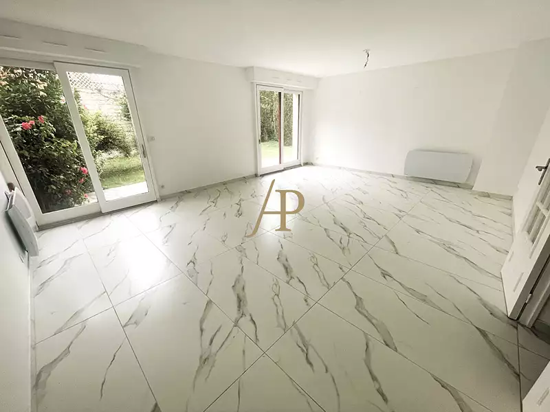SAINT GERMAIN EN LAYE, à seulement 5 minutes de la place du marché, découvrez un magnifique appartement de 98,73 m² situé dans un immeuble récent, agrémenté de 200 m² de jardin. Il se compose d'une entrée avec placard, d'un spacieux séjour donnant sur le jardin, d'une cuisine ouverte entièrement équipée, de trois chambres, dont une suite parentale avec salle d'eau, ainsi qu'une salle de bains. Un double box en sous-sol complète cet ensemble. En excellent état général, cette opportunité est très rare sur le marché ! SAINT GERMAIN EN LAYE, just 5 minutes from the market square, discover a magnificent apartment of 98.73 m2 located in a recent building, decorated with 200 m2 garden. It consists of an entrance with cupboard, a spacious living room overlooking the garden, a fully equipped open kitchen, three bedrooms, including a master suite with bathroom and a bathroom. A double box in the basement completes this set. In excellent general condition, this opportunity is very rare on the market (4.21 % honoraires TTC à la charge de l'acquéreur.) Copropriété de 20 lots (Pas de procédure en cours). Charges annuelles : 3000 euros.