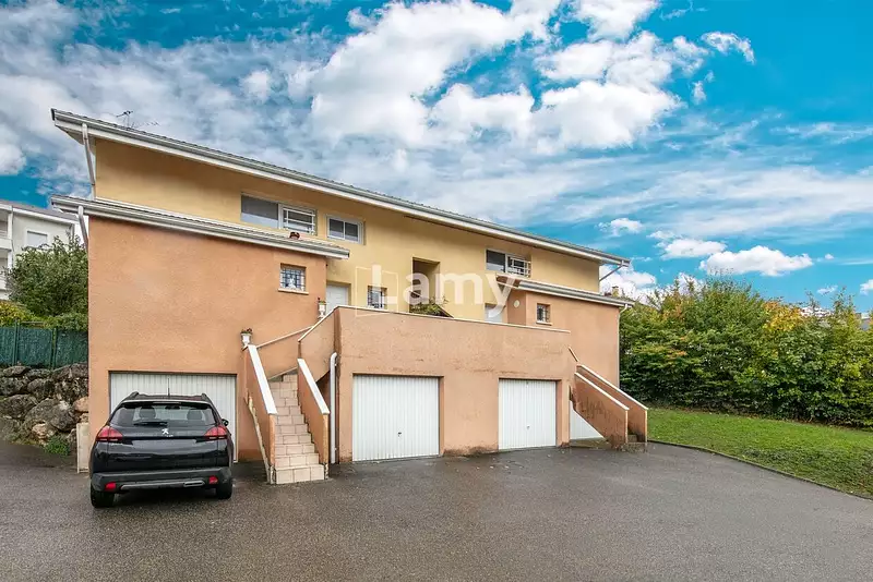VOIRON Quartier Résidentiel A proximité des commodités tout en étant au calme.Dans petite copropriété de bon standing sécurisée, très agréable appartement de type T4 en duplex et en rez-de-jardin se composant : d'une entrée desservant un séjour double avec cuisine ouverte, un cellier, un wc, le tout donnant sur une terrasse et accès jardin. A l'étage : trois chambres dont une avec balcon, une salle d'eau avec wc. En dépendance : un garage. Chauffage individuel gaz. Quelques travaux de rafraichissement sont à prévoir. Emplacement premium