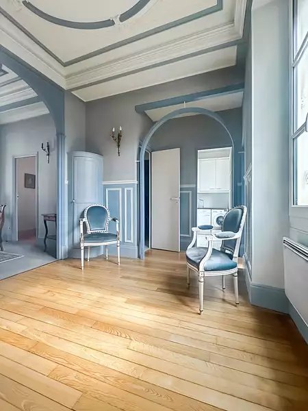Divisible en 2 logements distincts - appartement au charme de l'ancien situé dans un emplacement privilégié, cet appartement au charme de l'ancien séduit par ses belles hauteurs sous plafond, ses moulures et sa tourelle. traversant, lumineux et fonctionnel, il offre un cadre de vie unique alliant confort et authenticité. atouts : possibilité de division en 2 appartements distincts très belle hauteur sous plafond & moulures appartement traversant, lumineux et soigné nombreux rangements & aménagements sur mesure résidence sécurisée & parties communes bien entretenues composition : 1er niveau : une belle entrée prolongée par une tourelle, une cuisine aménagée et équipée, un salon agrémenté d'une bibliothèque sur mesure, une salle à manger, une chambre, une salle de bain avec wc. etage (potentiel 2e appartement) : un bel espace de vie avec possibilité d'y installer une cuisine, une chambre, une salle d'eau avec wc. sous-sol : superbe cave voûtée de 22 m². un bien rare et modulable, idéal pour un projet familial ou un investissement locatif. -