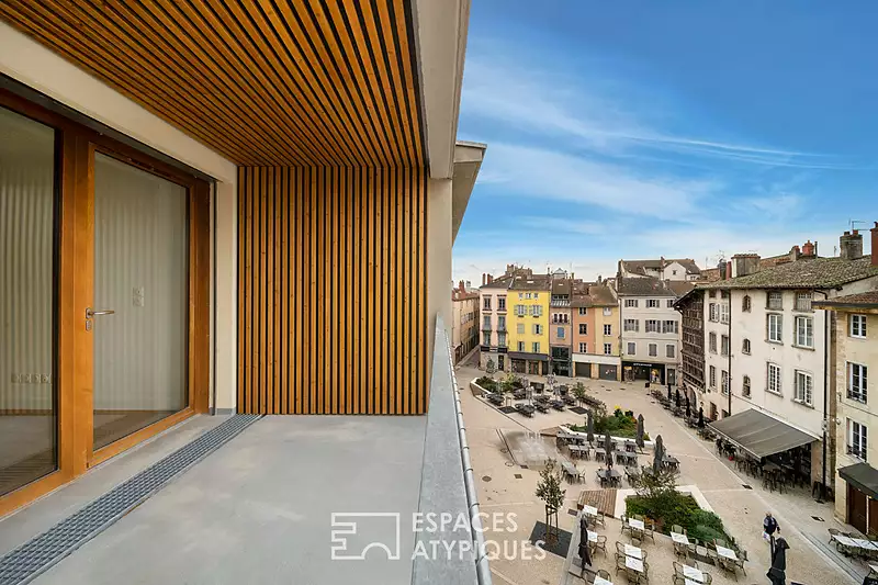 Au coeur du centre historique de Mâcon, cet appartement neuf de 99 m² avec terrasse couverte s'ouvre sur la place centrale la plus prisée de la ville. Niché au deuxième étage d'un immeuble contemporain avec ascenseur, ce 4 pièces combine vie urbaine et confort haut de gamme. L'architecture moderne de l'ensemble tranche élégamment avec le charme des façades anciennes environnantes. L'atout rare de ce bien : une large ouverture vers l'extérieur via une loggia abritée, véritable prolongement du séjour et véritable scène ouverte sur la vie de quartier. L'entrée mène à un vaste espace de vie de près de 27 m², lumineux et épuré, conçu pour accueillir une cuisine ouverte. Trois chambres confortables, une grande salle d'eau avec double vasque, ainsi qu'un espace buanderie viennent parfaire l'ensemble. A quelques pas des commerces, restaurants, écoles et de la gare, cet appartement offre une qualité de vie exceptionnelle en plein centre. DPE: Classe énergie : C- Classe climat :C - Montant moyen estimé des dépenses annuelles d'énergie entre 720 et 1030 euros pour un usage standard, établi à partir des prix moyens des énergies indexés au 1er janvier 2021(abonnements compris). Fait partie d'une copropriété de 18 lots. Charges annuelles estimées : 1138 euros. Aucune procédure en cours. Les informations sur les risques auxquels ce bien est exposé sont disponibles sur le site Géorisques pour les zones concernées. Arthur PHILIBERT, 06.29.52.10.75 Agent commercial (EI), 943 040 956 RSAC LYON. Copropriété de 29 lots - dont 18 lots habitation. (Pas de procédure en cours). Charges annuelles : 1138.64 euros. Arthur PHILIBERT (EI) Agent Commercial - Numéro RSAC : - .