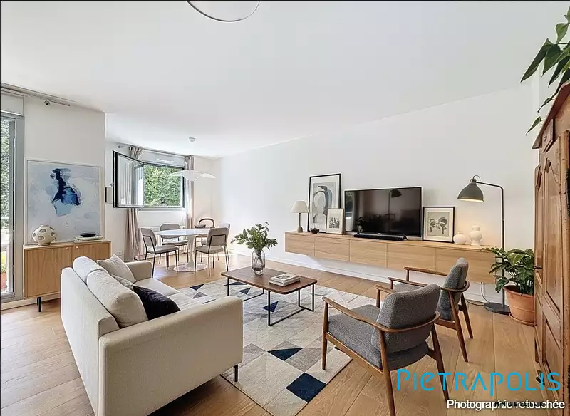 - Spacieux salon / séjour de 34 m² ouvrant sur un balcon de 6 m²,