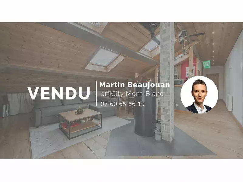Appartement avec jardin privatif et deux stationnements extérieurs, situé à Passy, dans un environnement calme et proche des commodités. Beaucoup de charme avec ses sous-pente et son aspect chalet.