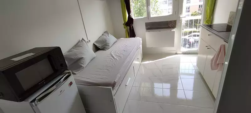 Cette petite studette en totale exclusivité, toute équipée entre Saint Barnabé et Louis Armand vous ravira par sa dispostion simple et efficace. Une kitchenette, un frigo, un micro onde, des rangements pour la vaisselle et les affaires, une plaque de cuisson, un lit double dépliable gigogne de belle qualité avec un grand coffre, une tablette amovible sous la grande fenêtre pour travailler ou déjeuner au soleil. Enfin, une cabine de douche et un wc complétent ce bien. Les diagnostics sont à votre disposItion, la résidence est entretenue avec un grand parc arboré et des places de parking non attribuées. La rentabilité locative de ce bien est asssurée par des chiffres réels. Ce bien n'est pas soumis au DPE.