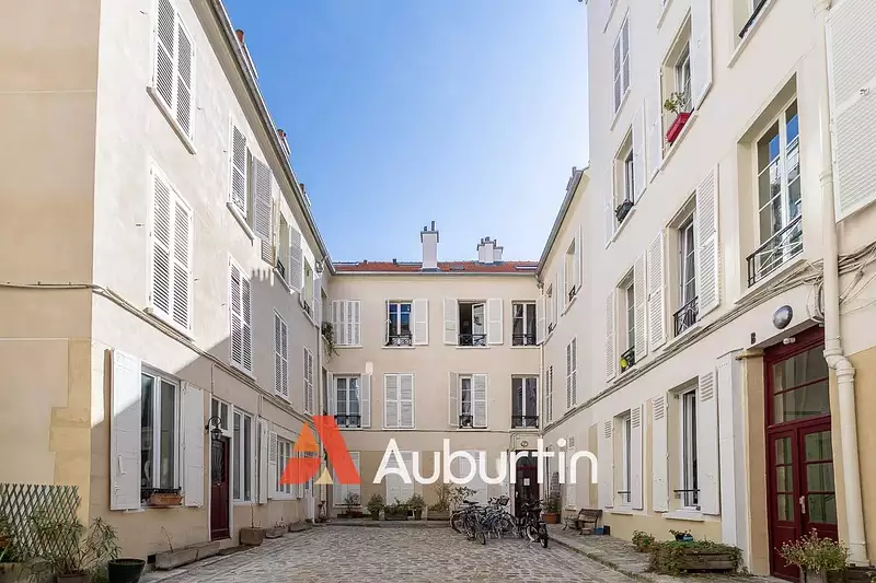 Située au 1er étage d'un immeuble entretenu, elle offre une jolie vue sur une belle cour pavée typique de l'architecture parisienne.