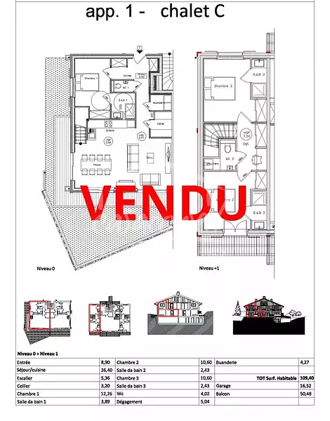 Vendu avec Garage en sous-sol et cave.