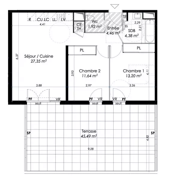 | Disponible immédiatement | 3 pièces - 2 chambres |