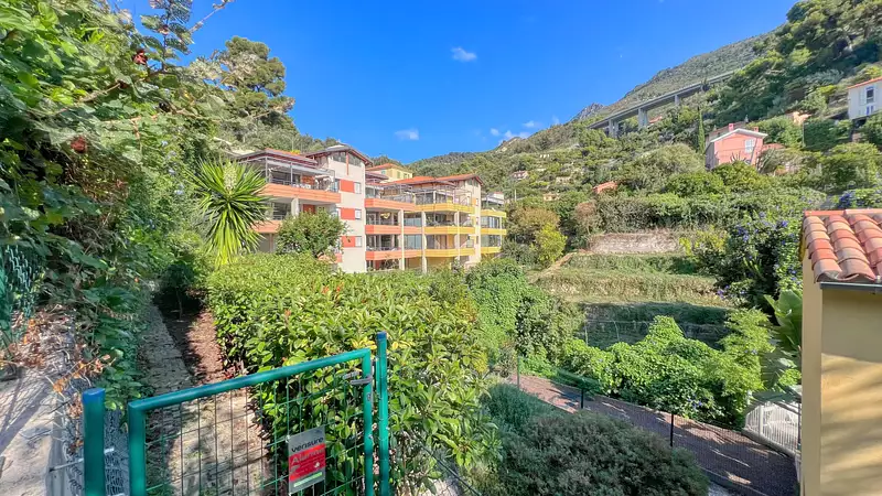 À vendre à Menton, quartier recherché de Garavan : élégant appartement rénové en rez-de-chaussée, situé dans une copropriété moderne avec piscine et parc privé. À seulement 5 minutes de la mer, il offre luminosité et confort.