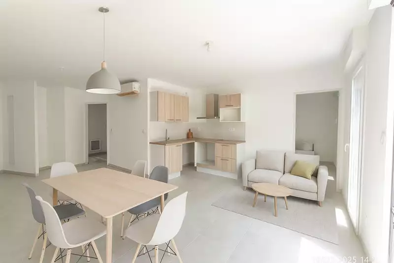 À seulement 10 minutes à pied du centre-ville, dans un environnement calme et verdoyant, découvrez ce bel appartement de type 3 situé en rez-de-chaussée d'une résidence neuve et sécurisée.