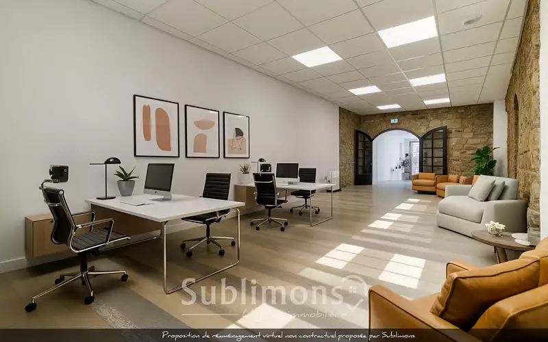 Derrière sa façade, près de 100 m² se déploient en quatre espaces modulables, avec local technique et sanitaires. Son aménagement soigné – sol PVC, chauffage électrique, menuiseries double vitrage – garantit un usage confortable, immédiatement opérationnel, pour des activités variées (hors restauration et industrie).