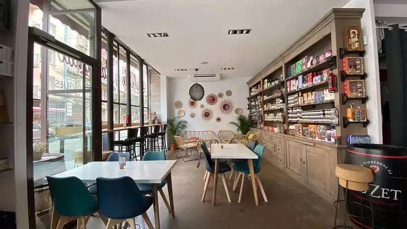 Ce local offre une belle salle d'une capacité d'environ 30 places assises pour un accueil aussi bien sur place qu'à la vente à emporter pour la partie épicerie.