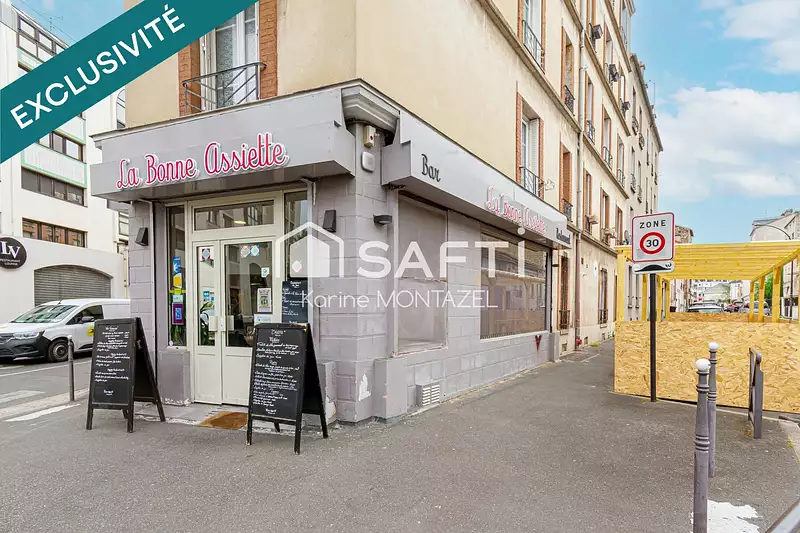 Ivry sur Seine: proche du centre ville, RER C à 2 min, nombreuses entreprises à proximité, dont très prochainement la Caisse des Dépôts (3000 personnes sont attendues), fonds de commerce licence 4, restaurant d'angle rénové, d'environ 101m² comprenant au rez-de-chaussée; un bar sur une salle de 42 places assises, possibilité de rajouter 15 couverts, cuisine équipée avec extraction et matériels récents, moteur de hotte neuf et dégraissage récent, WC, un sous-sol accessible par le restaurant avec chambre froide, coupes frites, épluche pomme de terre. loyer de 1202€ hors charges