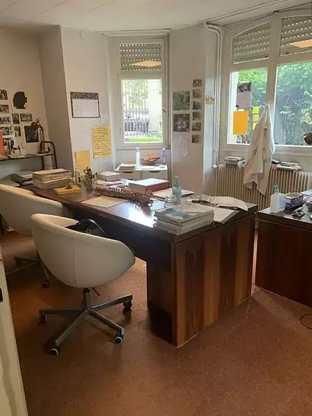 Dans un bel immeuble de caractère et de charme près de la gare, un local professionnel de 5 pièces d'une surface de 103 M2 avec une entrée spacieuse pouvant servir de salle d'attente, un WC.