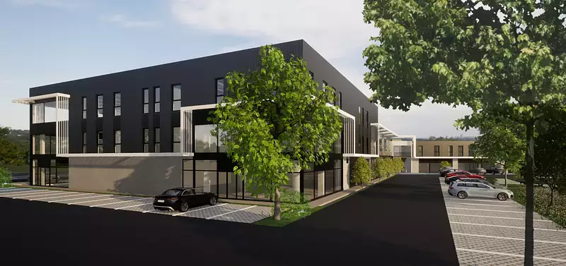 Local commercial de 1036m² livré fluides en attente dans un ensemble commercial et tertiaire de plus de 4800m². Livraison 3e trimestre 2026. 110 places de parking commun. Prix HT.