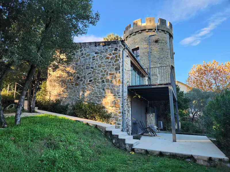 Elle se compose d'une pièce de vie lumineuse qui par sa grande baie vitrée ouvre sur une terrasse et offre une magnifique vue sur le parc. Dans sa continuité, la tour répartie sur 2 niveaux, dispose d'une cuisine aménagée et équipée. Le 1er étage dessert une salle d'eau, un dressing et des toilettes. Le dernier étage ouvre sur la chambre parentale. Vous apprécierez son studio indépendant avec terrasse qui bénéficie d'une chambre et d'une salle d'eau privative/wc.Il est idéal pour accueillir vos invités ou créer un espace supplémentaire.