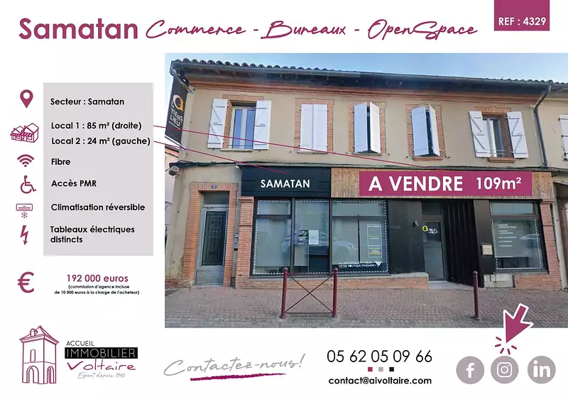 LOCAL COMMERCIAL – CENTRE DE SAMATAN (109 m²)
