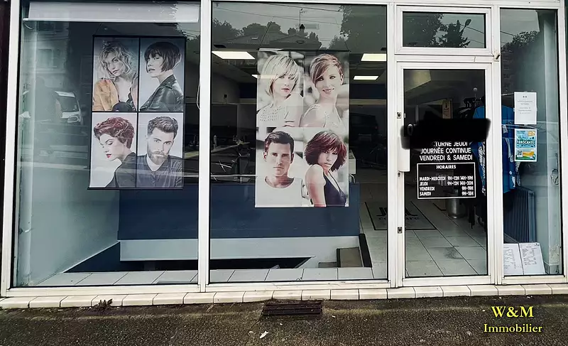 W et M IMMOBILIER !!! FOND DE COMMERCE A VENDRE Très beau salon de coiffure avec possibilité de faire au niveau inferieur un espace esthetique, onglerie. Le salon permet de travailler au minimum à quatre personnes. Aucun travaux à prévoir AFFAIRE A SAISIR !! Copropriété de 88 lots (Pas de procédure en cours). Charges annuelles : 2000 euros. Nadége PERELLI (EI) Agent Commercial - Numéro RSAC : - .
