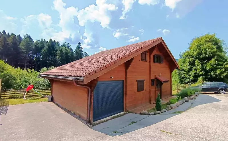 XONRUPT LONGEMER SUR LES HAUTEURS , ROBIN VOUS PROPOSE UN TYPIQUE CHALET EN MADRIER DE 2003 SUR ENVIRON 3000 m2 DE TERRAIN OFFRANT VUE IMPRENABLE SUR LES RELIEFS ET LES SAPINS DES VOSGES , PROCHE DU CENTRE ET DU LAC .