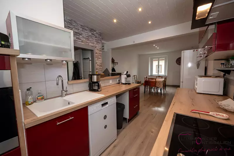 Frasne, appartement duplex très spacieux de 120 m2, comprenant un entrée, cuisine équipée ouverte sur séjour, un salon, 3 chambres dont une avec un grand dressing, salle de bain, wc, cellier, garage et terrain privatif. Cet appartement a été refait à neuf. Il se trouve à proximité la gare TGV pour Paris, et proche commerces et écoles.