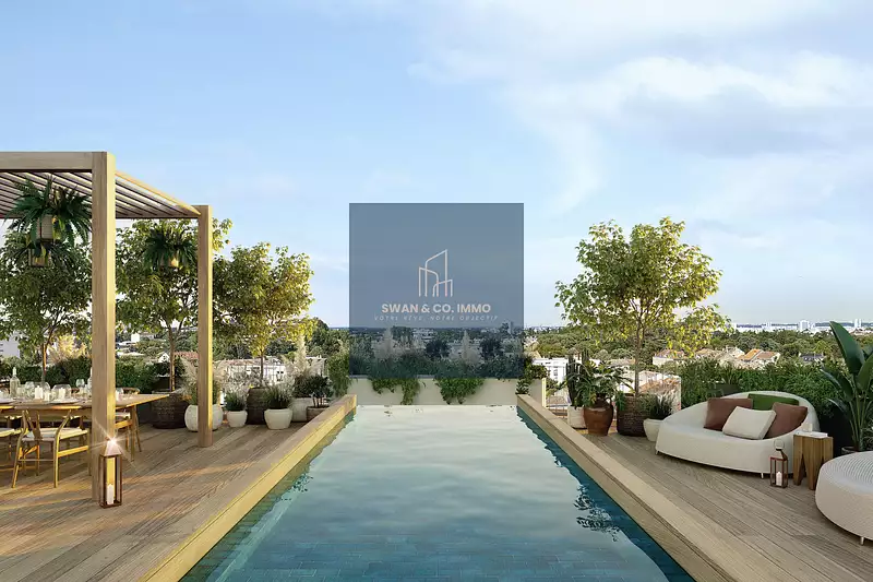 Côté extérieur, un rooftop privé de 137 m2 offre une expérience de vie incomparable. Imaginé comme un véritable jardin suspendu, il vous invite à savourer des moments exceptionnels en toute intimité, avec la possibilité d’y aménager une piscine. Loin du tumulte urbain, mais à quelques pas de tout, vous surplombez Bordeaux avec élégance.