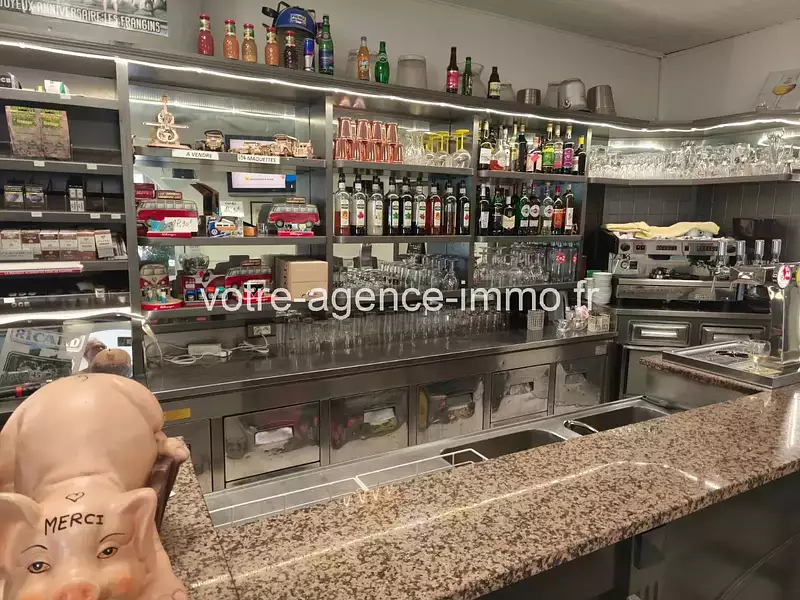 Deux salles de restaurant avec cuisine aux normes, une terrasse / véranda pouvant accueillir au total 80 couverts. Un espace BAR et point de vente tabac.