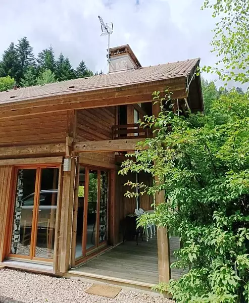 AXEL VOUS PRÉSENTE SUR GERARDMER A SEULEMENT 100 m DU LAC , CET IMPECCABLE CHALET EN DOUGLAS DE 2004 , BLOTTI DANS SON COCON DE VERDURE , CENTRE VILLE ET LAC A PIED , ET A JUSTE PRIX !! .