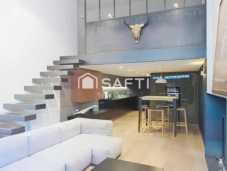 Ce bien rare de 124 m², entièrement repensé par un architecte, séduit par sa rénovation soignée, ses volumes optimisés et son style résolument contemporain. En duplex, il s’organise autour d’une belle pièce d’entrée aménagée en bureau avec accès à une terrasse de 16 m², d’un espace salon / cuisine ouvert équipé d’une cuisine sur mesure, d’un cellier attenant et de WC séparés.