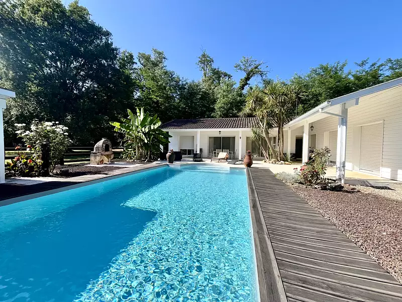 Côté extérieur, vous profiterez d’une piscine de 10 x 5 mètres avec son pool house équipé (évier + plancha), d’un carport pouvant abriter deux véhicules, ainsi que d’un cabanon de jardin.