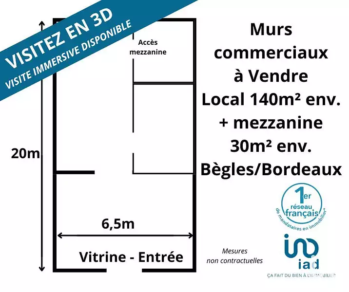 Murs commerciaux de 130m² environ env. + 30m² environ mezzanine offre un potentiel exceptionnel dans un quartier en plein essor, avec sa façade de 7ml.