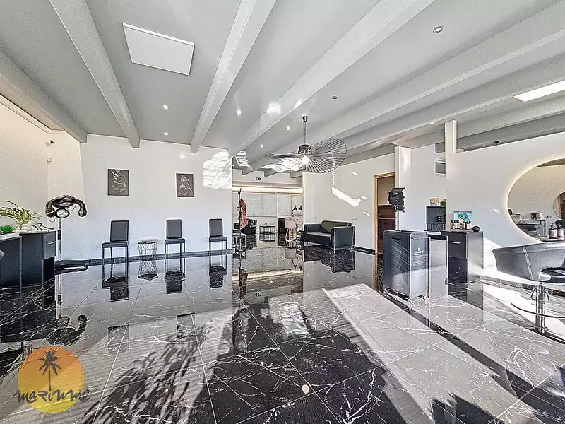Il se compose d'un accueil, WC, espace de stockage, grande salle principale d'environ 70m², 2 locaux fermés avec climatisation et points d'eau, une salle de repos/cuisine, un autre espace ouvert.