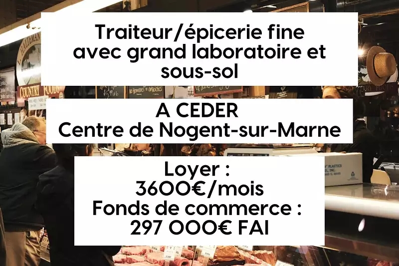 Fond de commerce à céder. Local commercial de 150 m2 pour Traiteur / épicerie fine en parfait état.