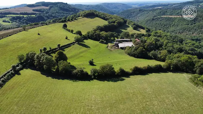 - Maison principale de 158 m2 habitables (250 m2 au total sur 2 niveaux), avec puits, sources, jardin et pigeonnier datant de 1784. - Ancienne bergerie en pierre de 300 m2 avec charpente traditionnelle en bois de pays, pouvant être valorisée en gîte ou habitation. - Stabulation bovins viandes (430 m2 36 places), hangar à fourrage (160 m2), appentis (240 m2), bâtiment en pierre (70 m2 pour céréales).