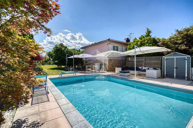 Située à Viry, à proximité immédiate des axes autoroutiers, cette maison individuelle offre un cadre de vie privilégié à seulement 30 min d'Annecy et de Genève. Nichée dans un quartier résidentiel calme, elle repose sur un terrain de 1 720 m² agrémenté d'une piscine avec abris et d'une double terrasse, parfaits pour profiter des beaux jours.