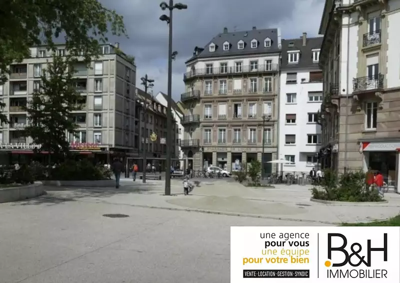 En plein coeur de la Krutenau, deux locaux commerciaux de 171 m² avec terrasse, un appartement 2/3 pièces de fonction au premier étage dans un immeuble ancien en pierres de taille.