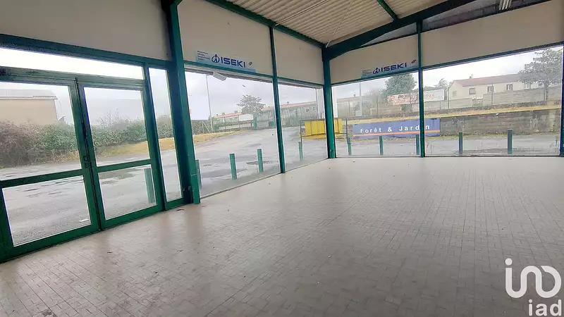 La surface commerciale comprend une vitrine, un grand espace de vente, espace bureau, espace atelier, à l’arrière un local de stockage (avec mezzanine) et portail pour réception des marchandises.