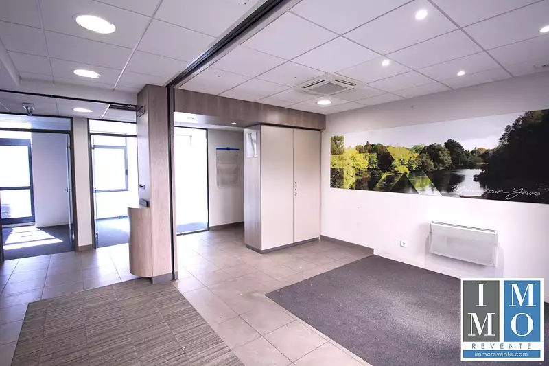 Cette ensemble est composé au rdc : accueil, espace ouvert, 2 bureaux, wc, au 1er bureau, salle d'archives, cuisine et salle de réunion, au dessus un très grand comble aménageable…