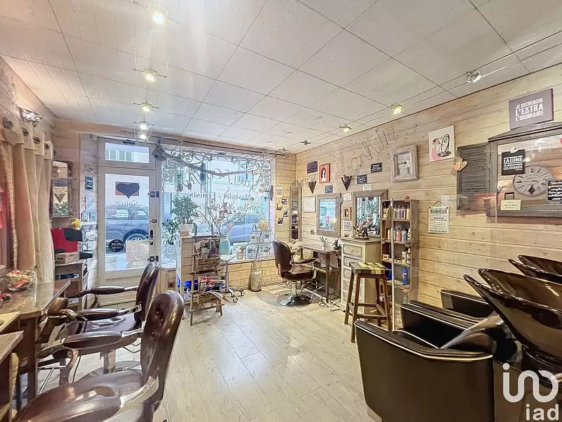 Le salon est un espace de 17 mètres carrés environ avec 2 bacs et 4 postes de coiffage. Il est climatisé et dispose, en annexe, d'un grand cellier (espace de stockage) privatif de 11 mètres carrés environ et de WC.