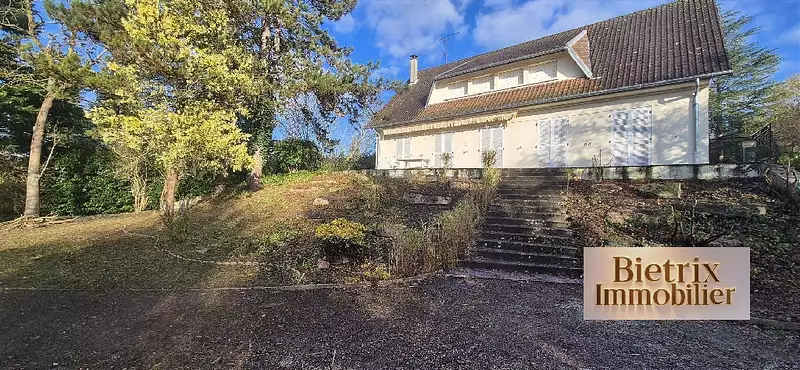 Parmain: secteur calme et résidentiel, construction traditionnelle avec grand sous-sol, ideal pour les artisans ou bricoleurs comp: Un hall d'entrée, une cuisine aménagée, un séjour salon avec cheminée accès terrasse, 3 chambres, dressing, salle de bains avec wc, un wc, à l'étage une grande salle de jeux, 2 chambres, un cabinet de toilette, sous-sol total avec chaufferie au fuel, buanderie, cave à vin, garages 3 voitures, atelier, vue imprenable sans vis à vis sur un parc/jardin clos et arboré de 5500 m² .