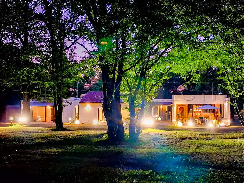 L'expérience se prolonge à l'extérieur avec près de 200 m² de terrasses en bois qui entourent la maison, offrant de multiples espaces pour la détente, les repas en plein air ou les soirées d'été. Un magnifique éclairage extérieur a été pensé pour sublimer le parc et l'architecture de la maison à la nuit tombée, créant une atmosphère absolument magique. Coup de coeur assuré !