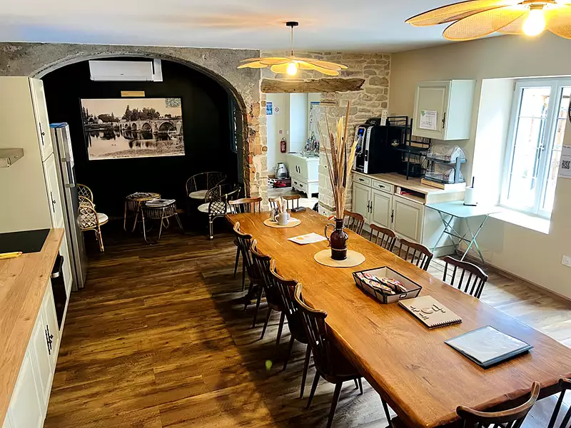 - d'une vaste salle à manger conviviale parfaite pour accueillir familles et groupes.