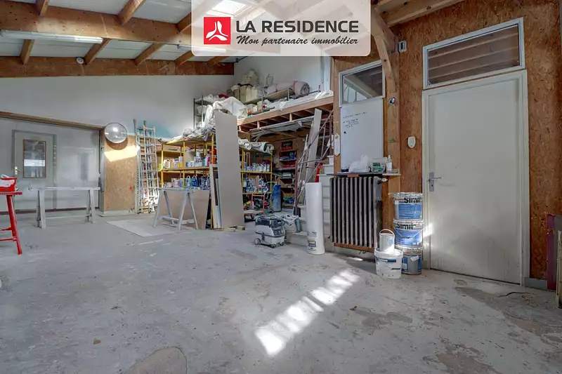 Il se compose de deux entrées, une sur bureau et une pour voiture, grande surface de stockage sur deux niveaux, partie atelier, second bureau en étage. .