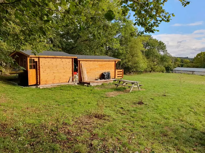 Sur 3280m2 de Terrain a Batir Avec 2 Chalets de Jardin avec Terrasse bois pour jumelage possible.Double vitrage sur les ouvrants.