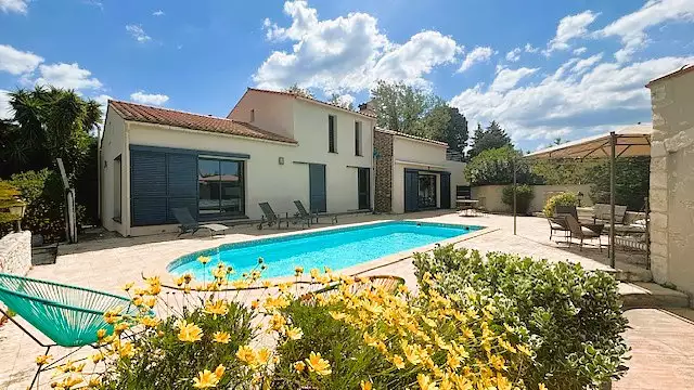 Cette propriété rénovée en 2015 avec des matériaux de qualité tels qu'une climatisation réversible, un poêle à bois, un portail électrique avec visiophone, un chauffe-eau solaire, une alarme et la fibre allie confort et élégance.
