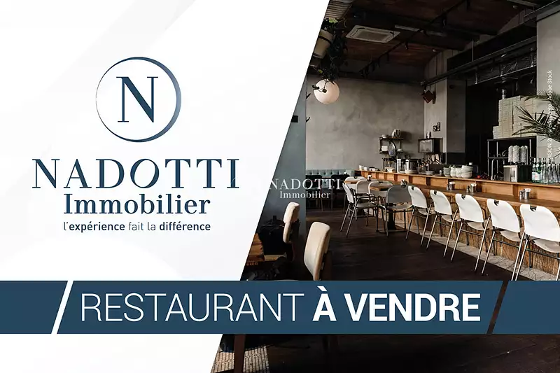 L'agence Nadotti, vous propose un fonds de commerce de restauration . Au rez de chaussée une grande salle de 50 places et des cuisines visibles depuis la salle ainsi qu'une grande terrasse de 80 places . A l'étage une grande réserve , un local du personnel avec wc douche et un appartement T2. L'ensemble fait 240 m2. De nombreuses places de parking autour du l'établissement