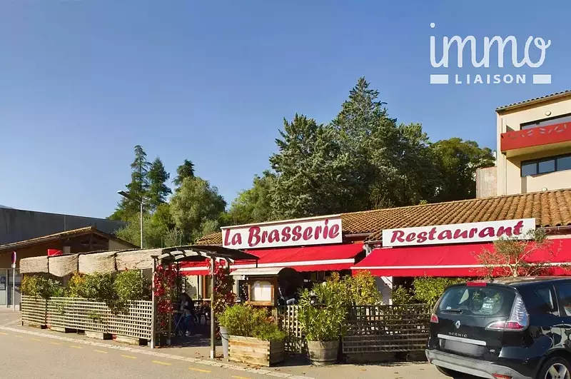 Situé dans la zone commerciale du village entre un tabac/presse, une pharmacie, un supermarché, une banque, un opticien, un électroménager, etc... . Le passage du public est continu toute l’année.