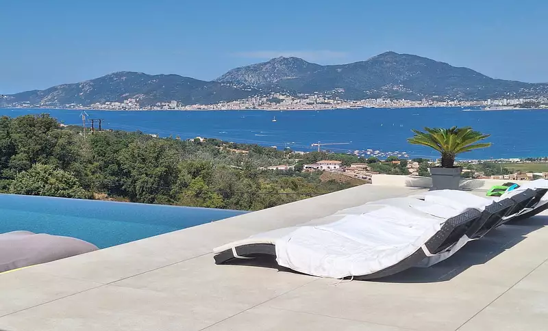 Dans le secteur de Porticcio en position dominante, dans une résidence composée d'une autre villa, nous avons le plaisir de vous présenter à la vente une charmante villa récente avec une agréable vue sur la mer et la montagne dans un environnement paisible à proximité immédiate des commerces et des plages, se composant d'une habitation principale de type F5 de 260m2 offrant de beaux volumes et vastes terrasses donnant accès direct sur une agréable piscine en L, la villa est très lumineuse et agréable, toutes les pièces vous offrent une vue époustouflante sur la mer et le maquis, une annexe de 44m2, un grand garage et un vaste atelier complètent la villa.