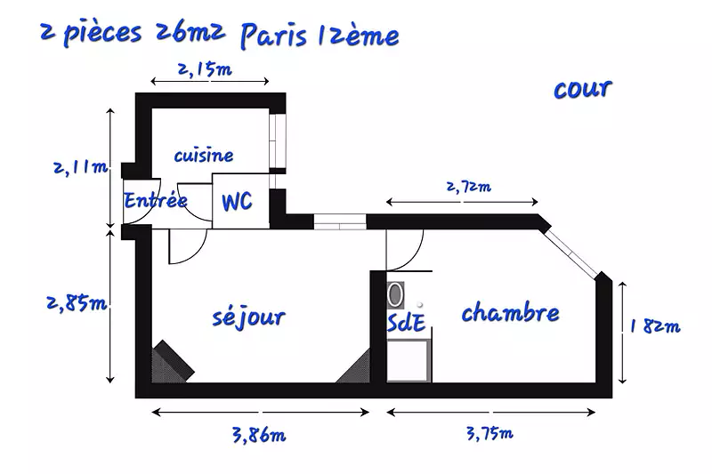 | 26 m² - 2 pièces - 1 chambre | 1 cave |